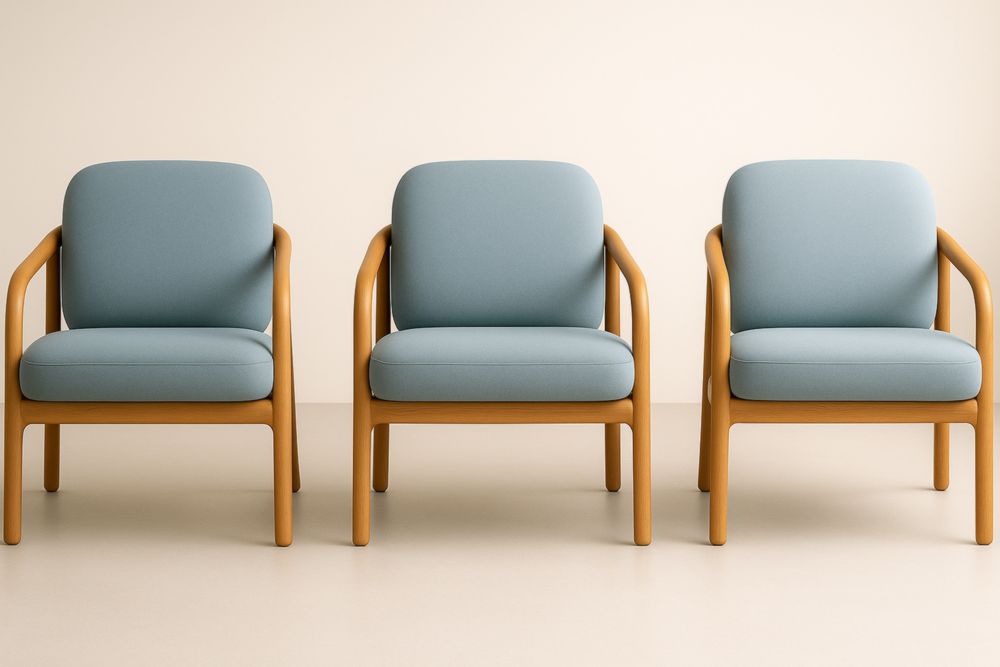 Fauteuil en tissu bleu avec cadre en bois de hêtre, ensemble de 3