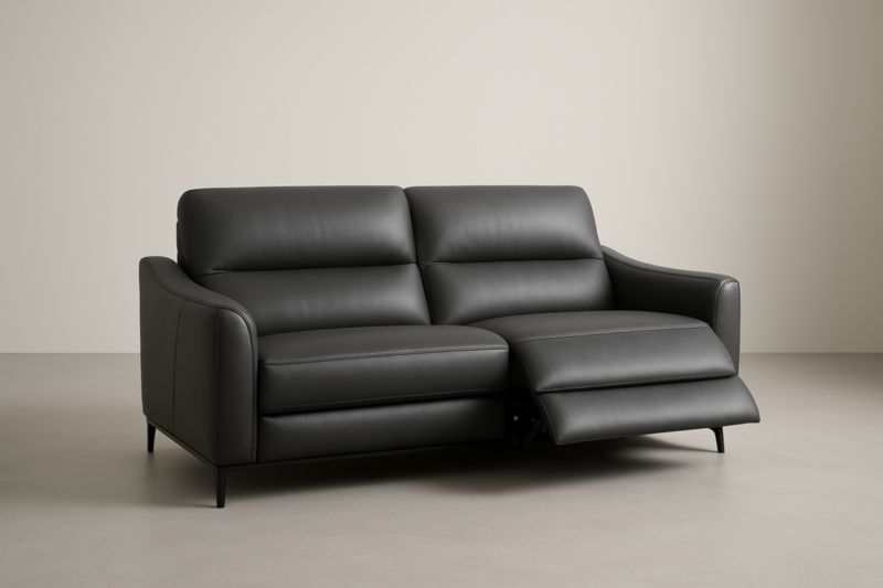 Canapé 2 places 180x85x100 cm en PU noir avec structure MDF, rembourrage en mousse et repose-pied réglable