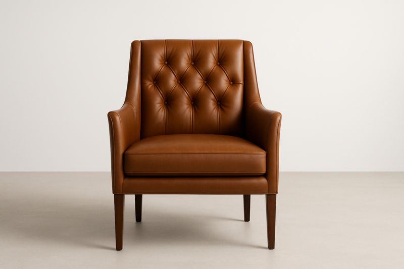 Fauteuil 95x75x85 cm en cuir pleine fleur marron avec structure en hêtre massif et rembourrage en mousse